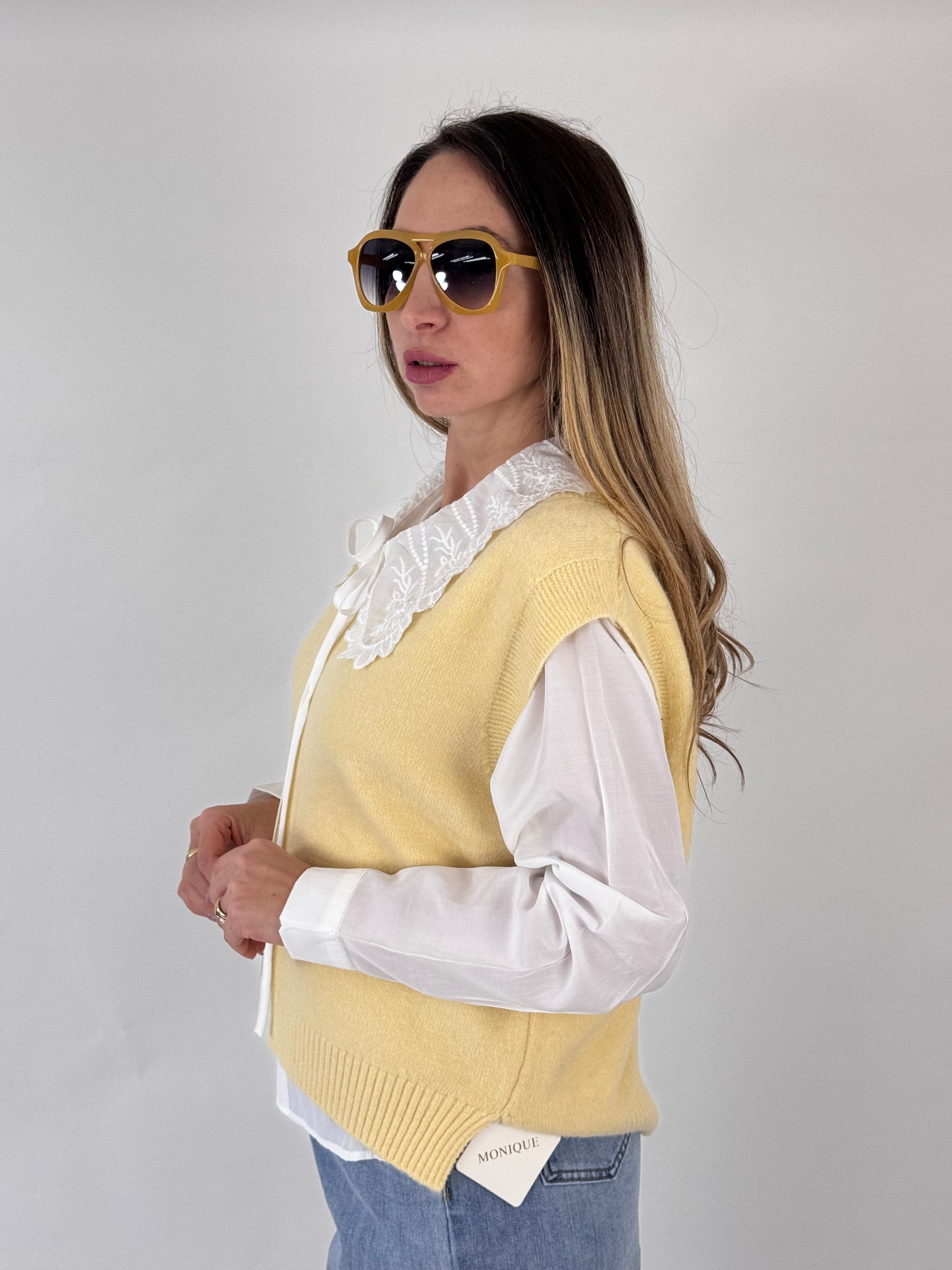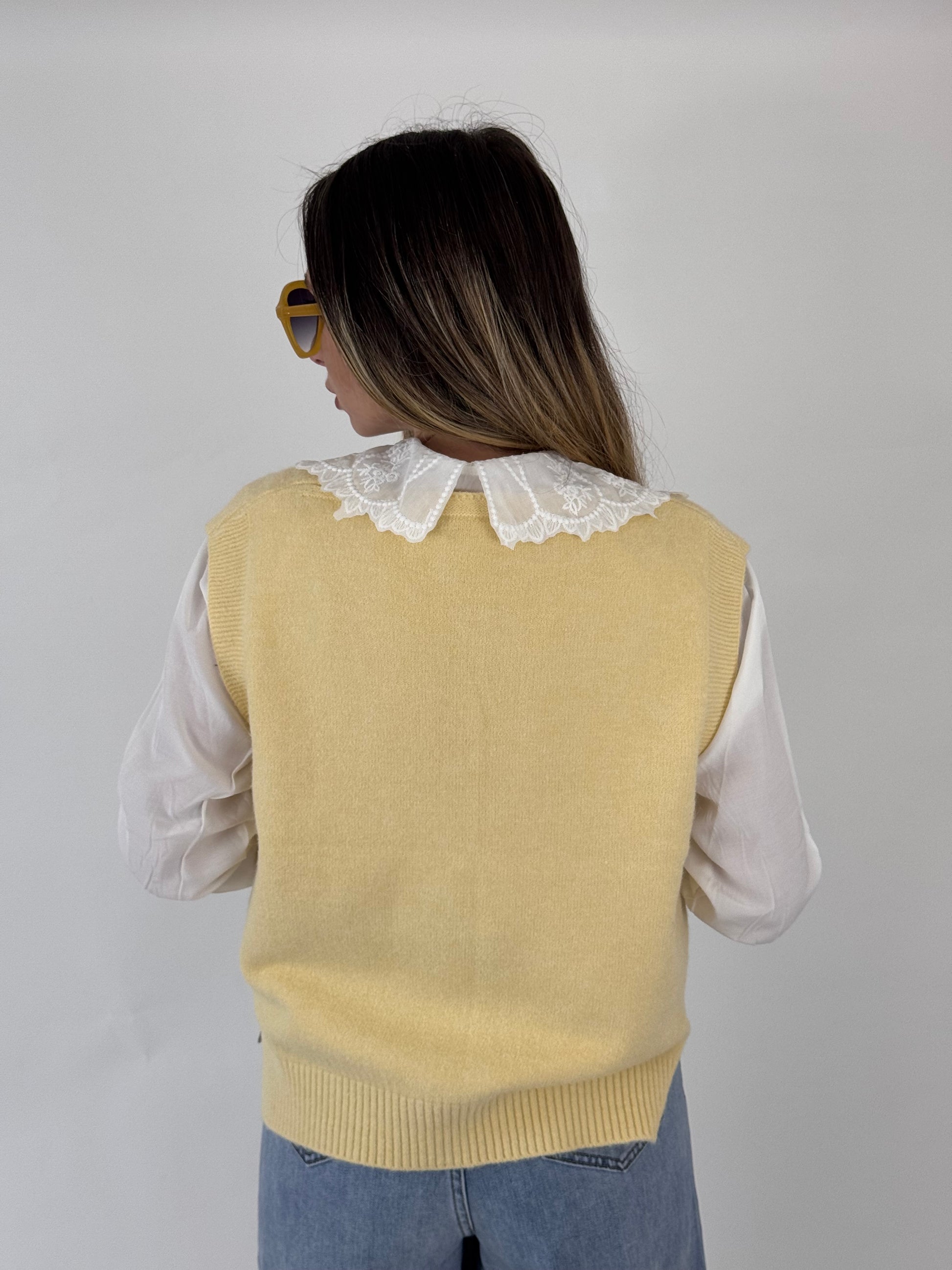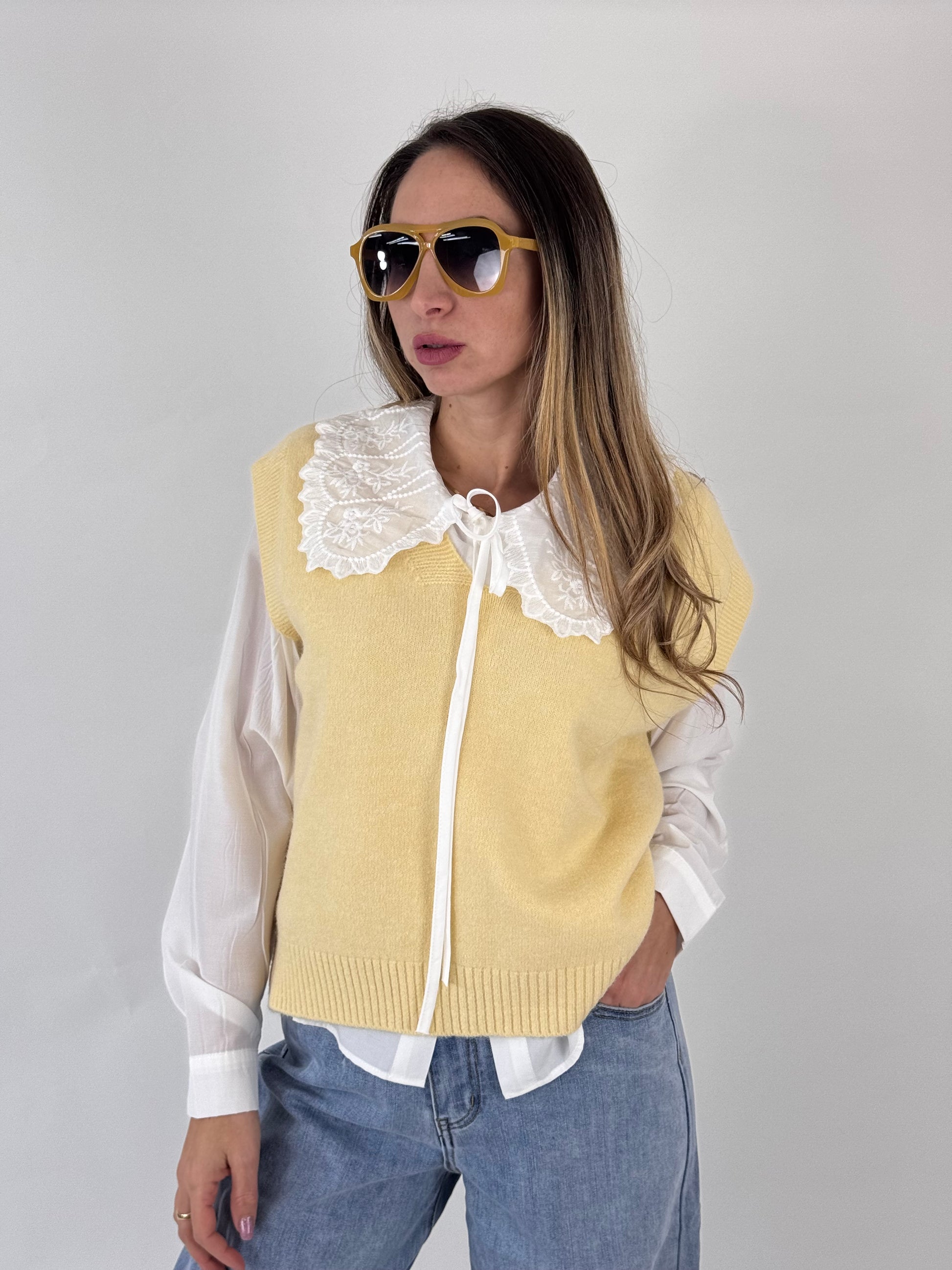 Cardigan effetto lana morbida, camicia con colletto ricamato