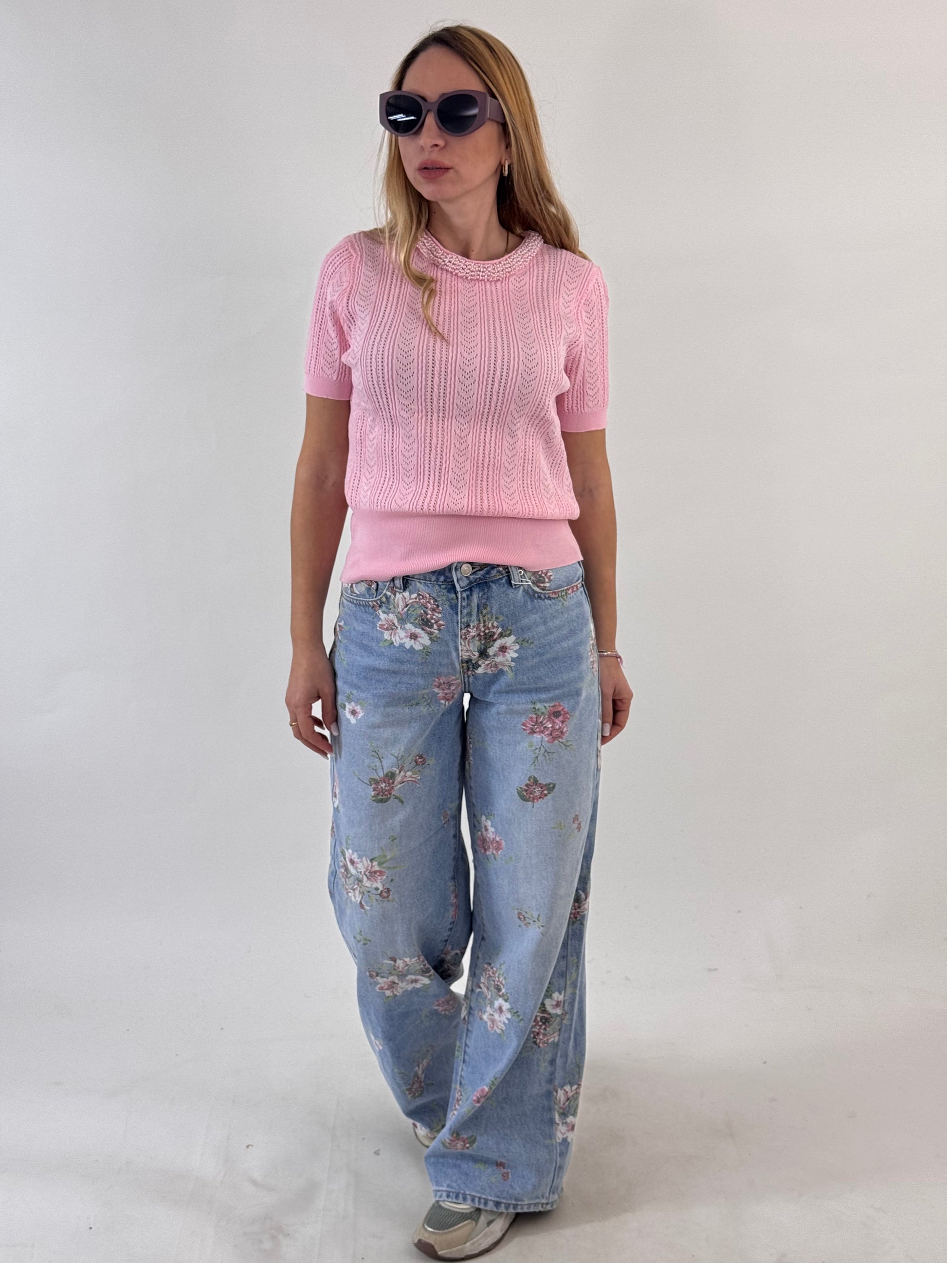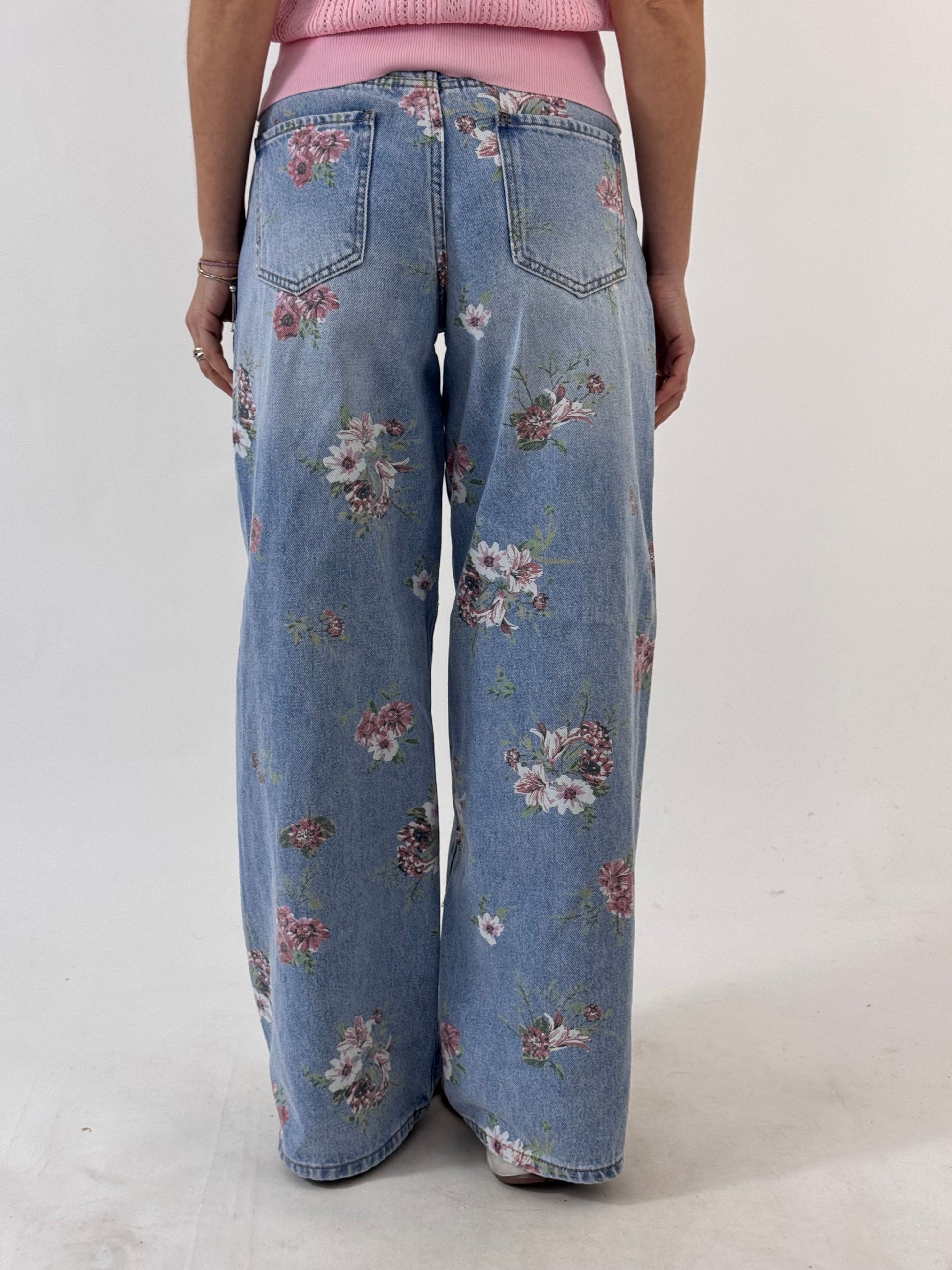 JEANS SERENITY FIORI ROSA