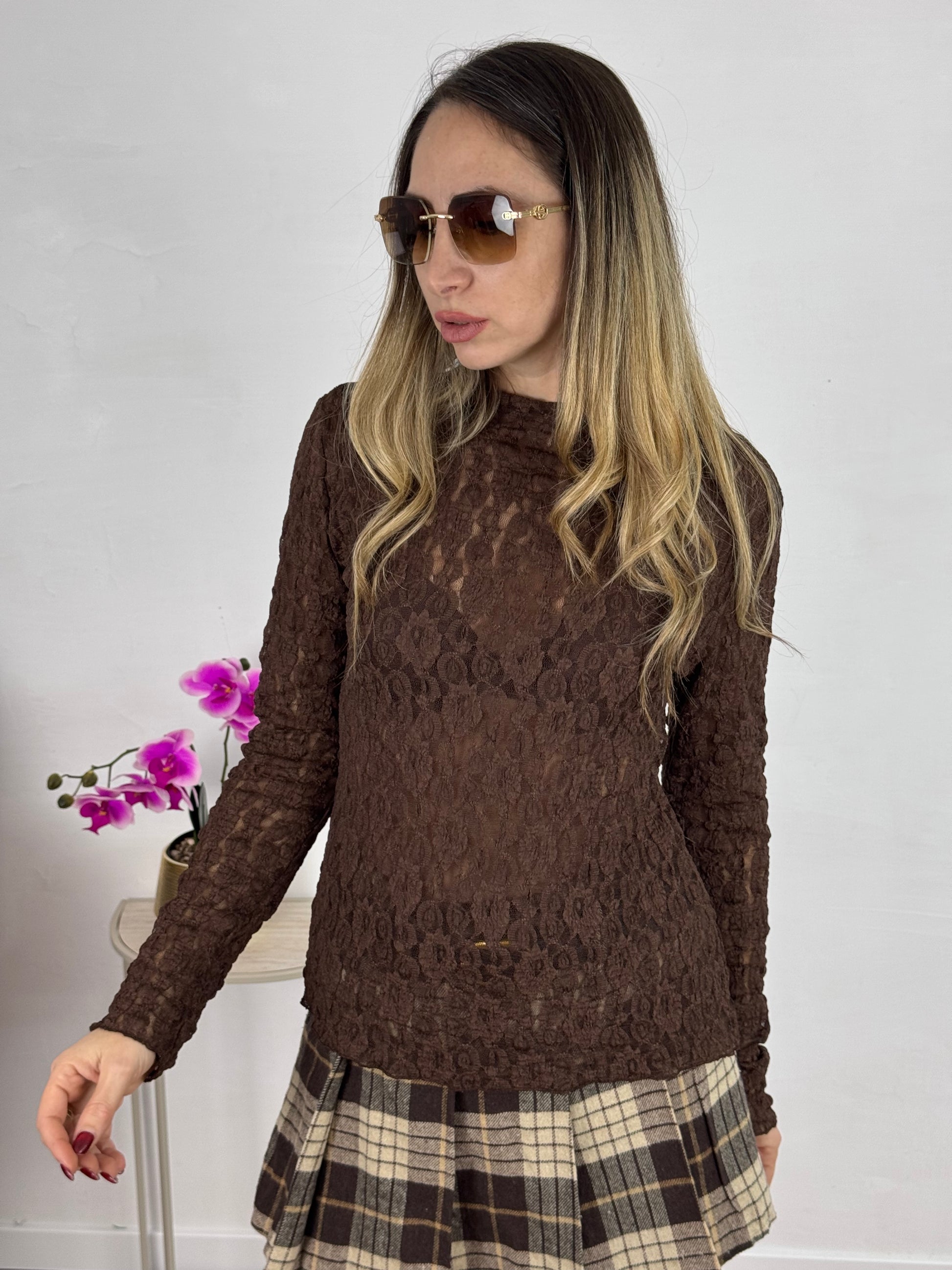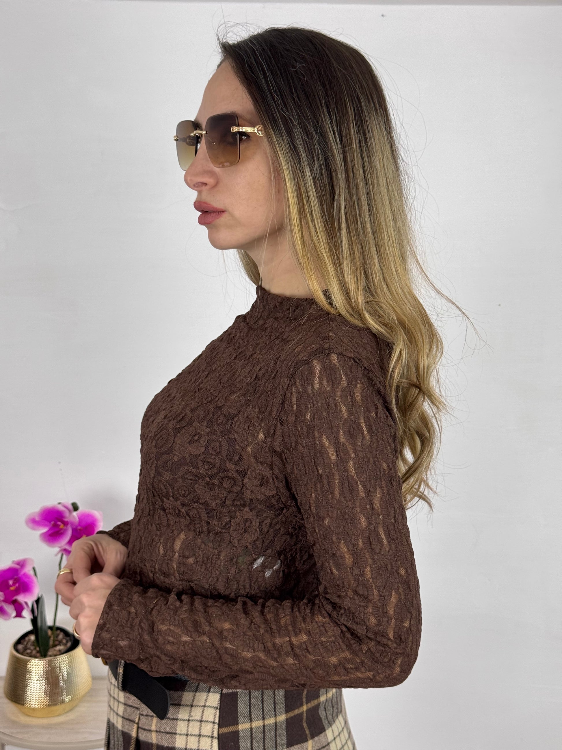 MAGLIETTINA IN PIZZO KELLY CHOCO